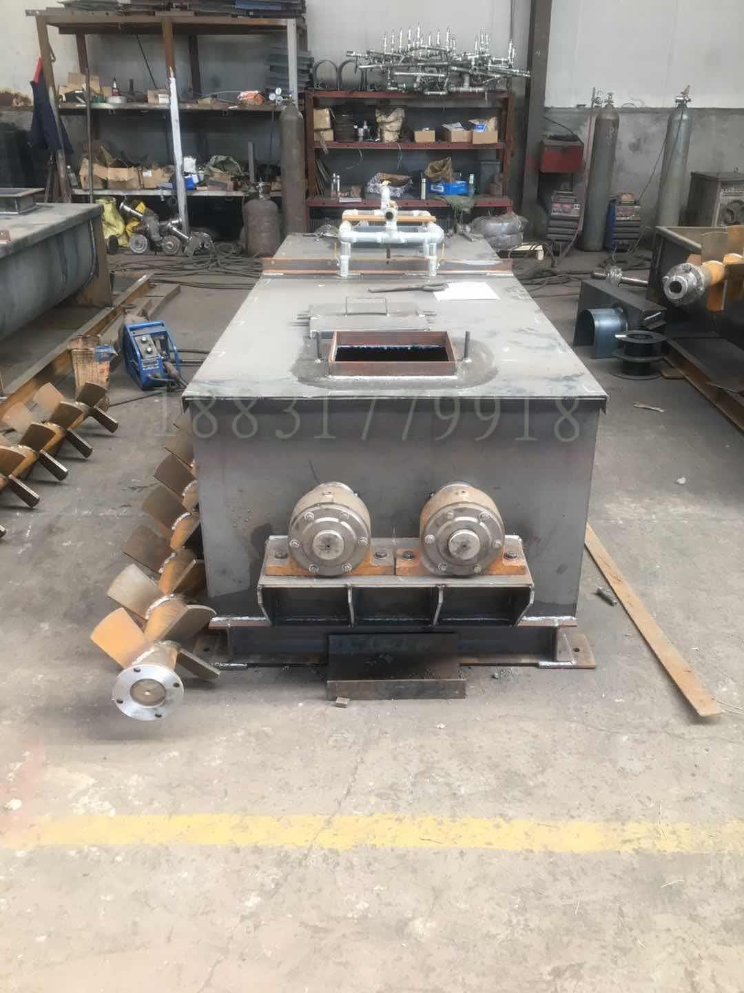 粉塵加濕機(jī)供水由閥門組進(jìn)行控制。為穩(wěn)定本系統(tǒng)供水及清潔水質(zhì),管路中設(shè)置了過濾器,并由主控柜對加濕機(jī)各部分進(jìn)行聯(lián)鎖控制,以達(dá)到控制供水恒濕運(yùn)行的目的。 單軸加濕機(jī)具有處理量,攪拌槽式石灰消化機(jī)具有對生石灰進(jìn)行強(qiáng)力攪拌消化的作用,操作維護(hù)簡單、消化 生產(chǎn)效率高、消化后的消石灰粉的比表面積大、對環(huán)境 衛(wèi)生等特點(diǎn),特別是對品質(zhì)差的生石灰消化適應(yīng)性強(qiáng)。粉塵加濕機(jī)采取雙軸結(jié)構(gòu)的優(yōu)點(diǎn)是攪拌效率高,系統(tǒng)密封嚴(yán)密,無飛灰外揚(yáng)。減速機(jī)結(jié)構(gòu)緊湊,占地面積小,傳動平穩(wěn),噪音低,攪拌均勻,葉片耐磨性好,操作維修方便,運(yùn)行可靠,葉片采用高耐磨錳鋼結(jié)構(gòu),設(shè)備使用壽命比傳統(tǒng)設(shè)備 長, 耐用。